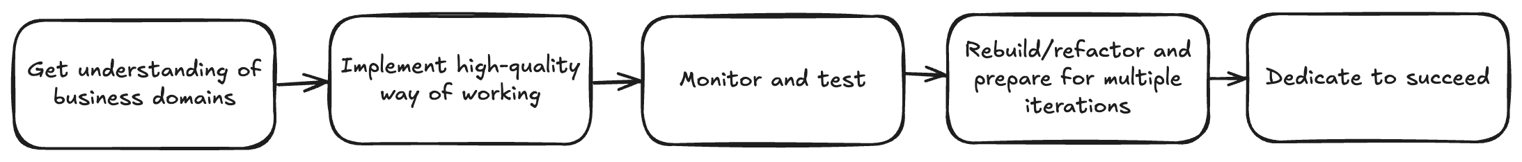 We spent significant time on deciding the best way to start this whole process. In hindsight, starting somewhere would have been better than considering where to begin. It may cause more rework in the future, but only rebuilding or refactoring will actually give you more understanding. A no-brainer has been to introduce our software engineering standards “from here on out” - being strict on enforcing our high-standards way of working led to more stability, despite the codebase.