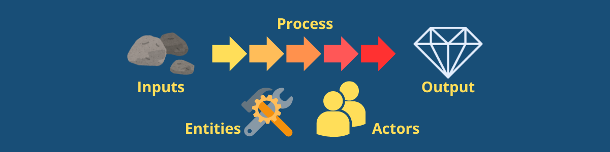 Processes take inputs and transform them into outputs by interaction between actors and entities. If done right, this transformation creates value. That is what customers pay a business for. If the output is more valuable than the input, the business is independently sustainable. Actors and entities interact within processes to create value.